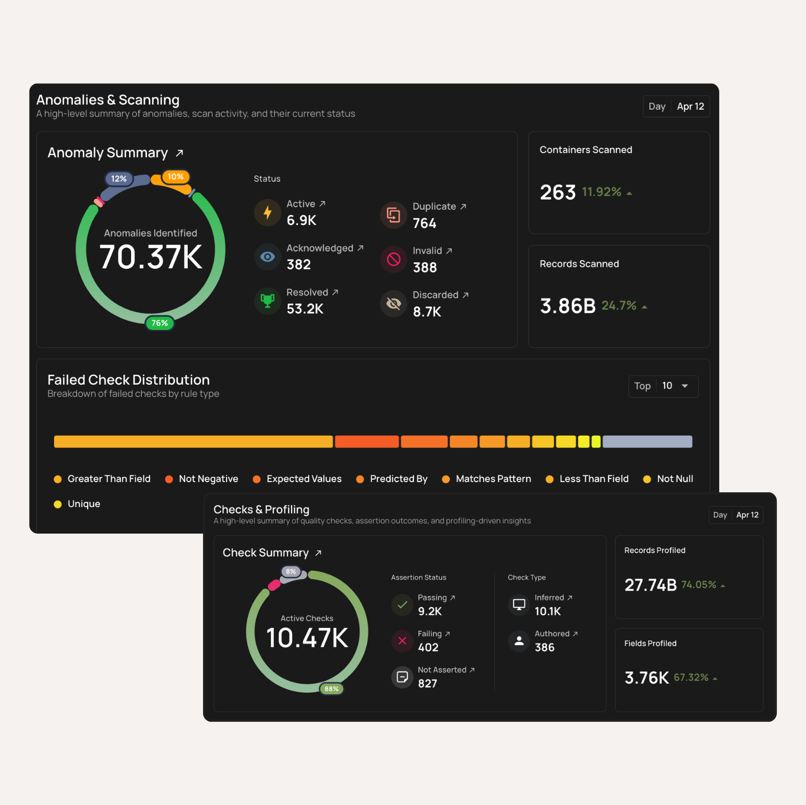 By continuously evaluating data as it is used, Qualytics produces governed signals that determine whether systems should proceed, flag issues, or prevent actions entirely. This ensures the context behind every decision is trusted when it matters.