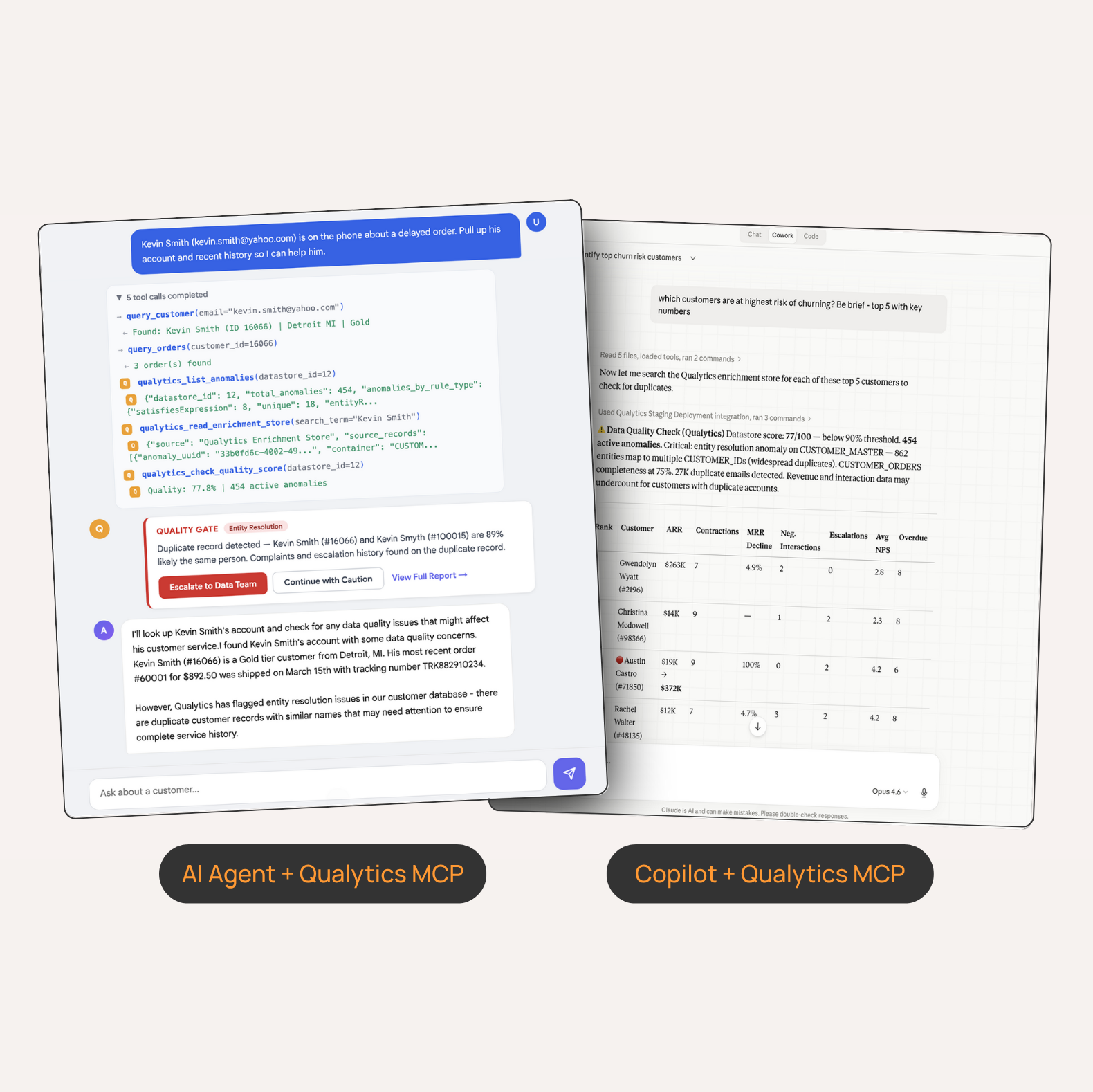 Data quality is applied as real-time controls across analytics, applications, agents, and AI workflows, shaping how data is used. Copilots and agents are first-class citizens able to access quality signals through MCP, API, and real-time interfaces.