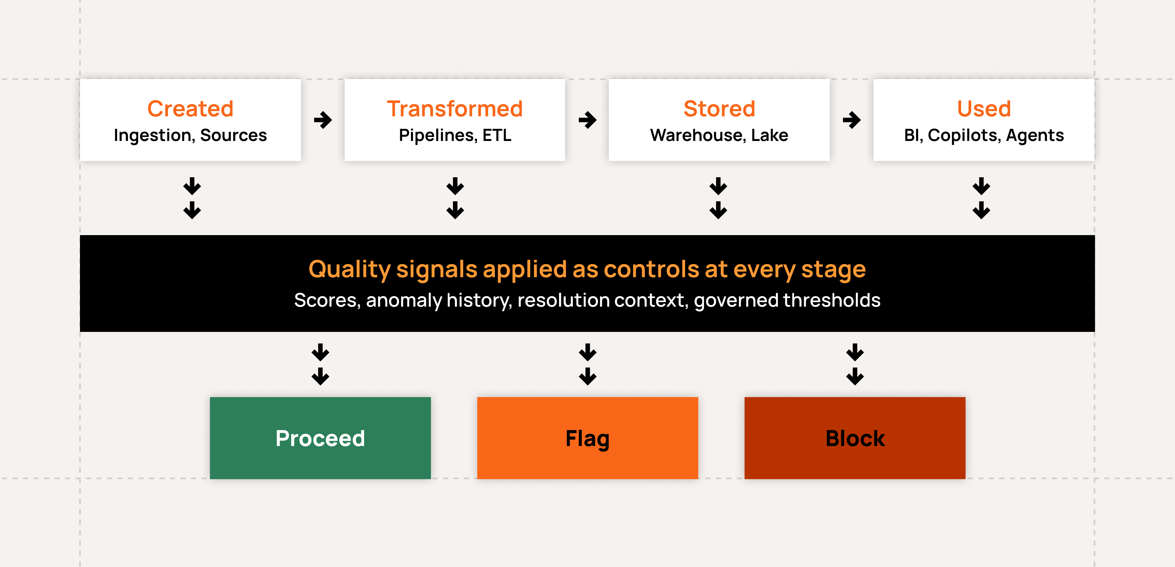 That's the level of coverage and responsiveness that produces quality signals worth trusting. It's also what the data control layer is built to deliver: continuously maintained, augmented quality controls that feed directly into the context layer as reliable, current signals.