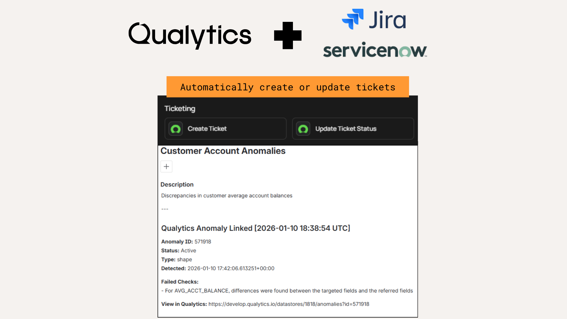 Together, these actions close the loop between Qualytics and the issue tracking systems your teams already use.