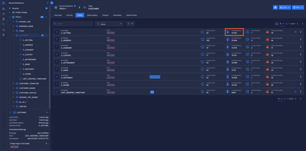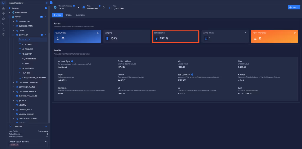 - Added two more decimal places to the Completeness metric in the Overview tab.